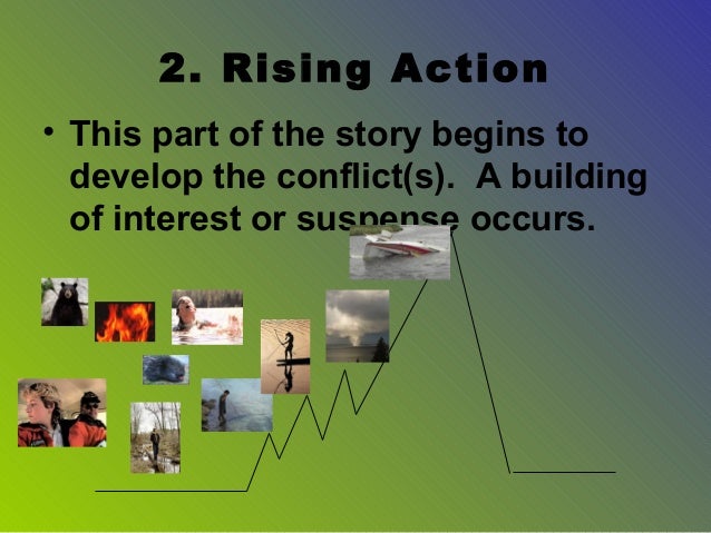 Hatchet? Hunger Games? PLOT STRUCTURE 3 = Rising Action . A series of complications or new twists the characters must ... 4 = Climax . The point of highest suspense or tension in the plot; a major turning point in the plot. The conflict is won or lost. CLIMAX . PLOT STRUCTURE 5 = Falling Action . Whatever happens after the climax. Do all ...